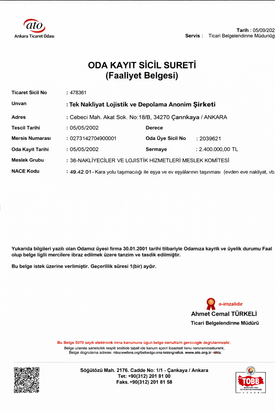 Firmamızın tüm faaliyetleri, ilgili mevzuat ve yasal düzenlemelere uygun olarak yürütülmektedir. Kurumsal faaliyet belgeleri, resmi evraklar ve sertifikalarımız.
